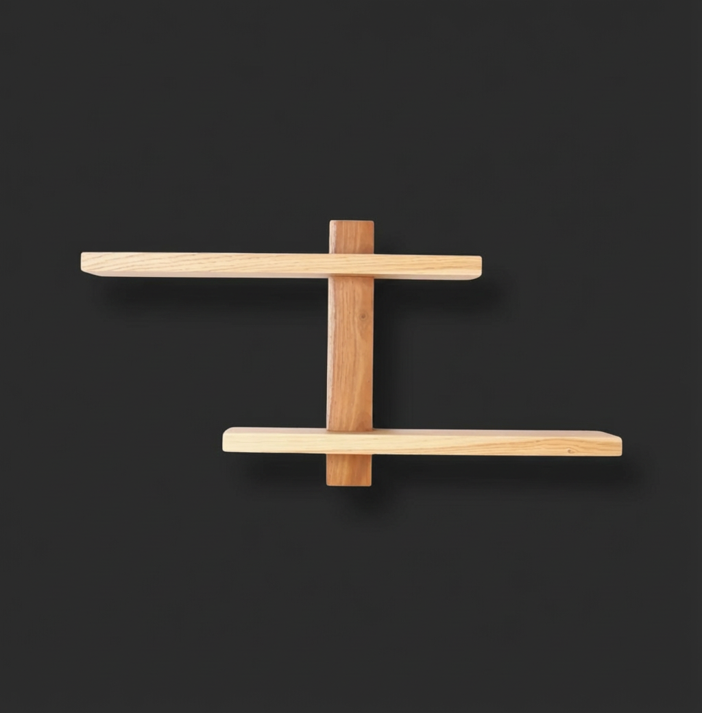 Harmonia er skabt til den bevidste æstetiker, der søger visuel ro uden at give afkald på karakter. Hyldens sjæl ligger i mødet mellem to ædle træsorter: Den nordiske, lyse eg, der danner de horisontale flader, og den dybe, mørke valnød, der udgør det vertikale anker.